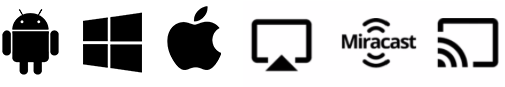 | Mobile devices | USB-C transmitter (DP ALT mode required) / Android app / AirPlay / Miracast / Google Cast |